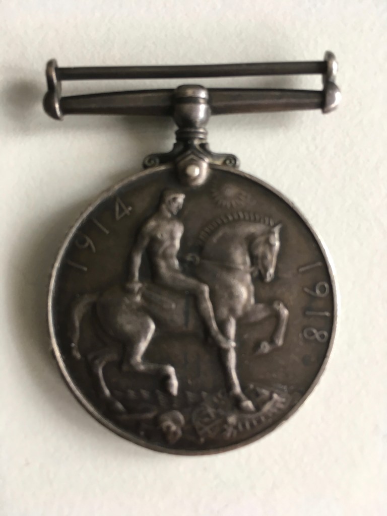He was awarded The Victory Medal, The British Medal, The 1914-15 Star as well as The Memorial Plaque (known as “The Death Penny”). Below you will see what these medals look like after I had them framed.