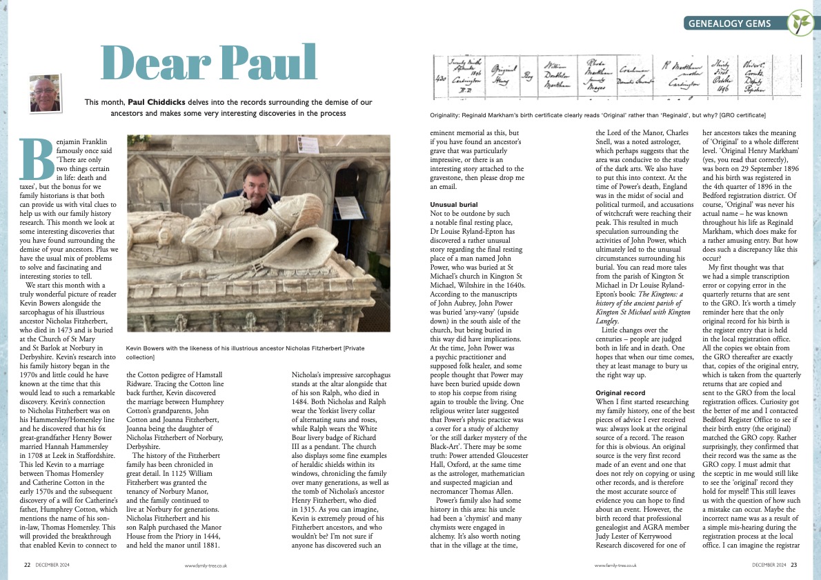 It recently occurred to me that many of you might not know that I write a regular column in Family Tree magazine here in the U.K., called ‘Dear Paul’.