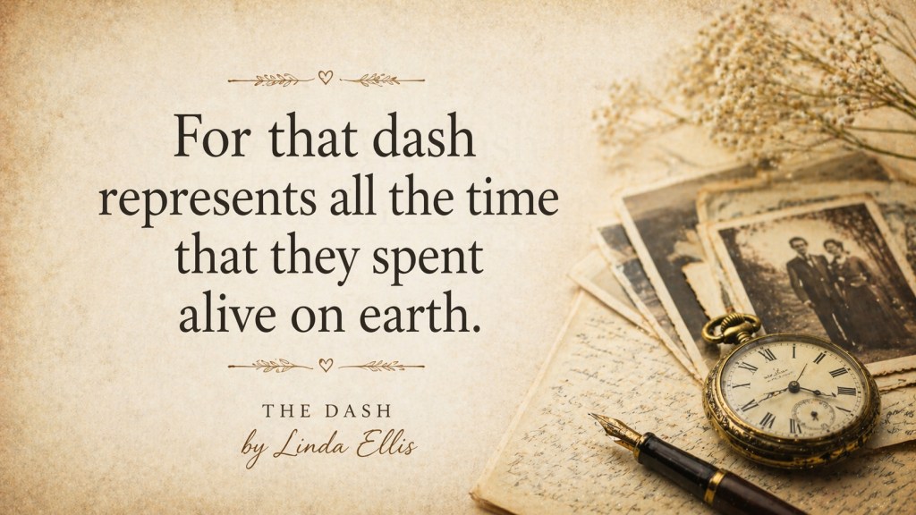 This simple idea sits at the heart of “The Dash” by Linda Ellis, which beautifully captures the meaning of the life lived between two dates.